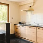 Es gibt eine komplette Küche mit allem, was man braucht, darunter ein Kühlschrank.